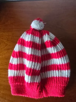Gorro de punto con el escudo del Athletic Club de Bilbao. - Diseño a rayas rojas y blancas. - Detalle de pompón blanco en la parte superior. - Escudo oficial del club. - Comprado en Bilbao en 1983 cuando salió la Gabarra.