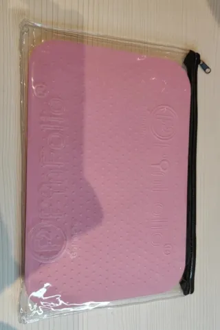 PinFolio mediano de color rosa con un diseño texturizado de estrellas. Incluye una funda transparente con cierre de cremallera negra. Sin estrenar y original, perfecto para llevar tus pins pritegidos o para guardarlos. - Marca: GOPINPRO - Tamaño: Mediano - Color: Rosa - Incluye funda protectora