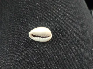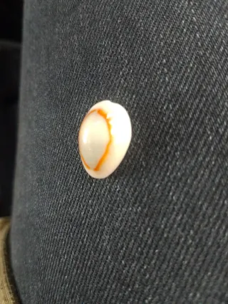 Pequeña concha marina con detalles en color naranja. - Color blanco y naranja. - Forma ovalada.