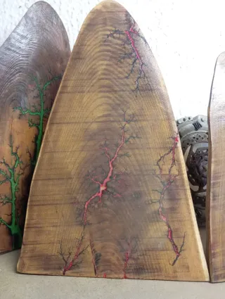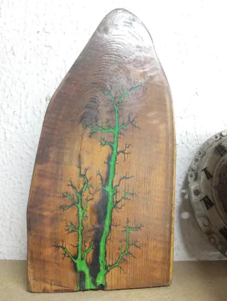 Pieza de artesanía única tallada en madera con un diseño de raíces en tonos verdes. - Material: Madera. - Diseño: Árboles estilizados. - Acabado: Natural con detalles en verde.