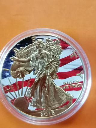 Moneda conmemorativa de la Libertad Americana, año 2018. Diseño de la Libertad caminando. Inscripción In God We Trust. Otras cosas en mi perfil.