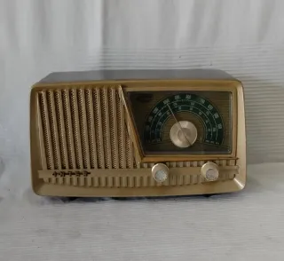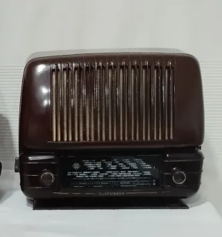 Radio antigua de color marrón oscuro. Presenta un diseño clásico con dial y mandos. FUNCIONA Dial con frecuencias marcadas. - Dos mandos circulares. - Rejilla frontal para el altavoz.Las fotos forman parte de la descripción del artículo que usted recibe Envío