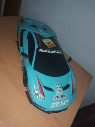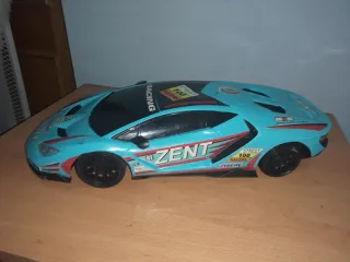Réplica a escala de un coche deportivo Lamborghini. - Diseño deportivo en color azul. - Detalles de carreras y patrocinadores. - Ruedas negras.