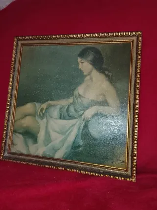 Cuadro antiguo óleo mujer junto al agua