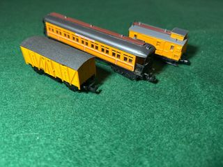 Procede de vitrina expositora sin rodaje, y perfectamente conservado como se puede apreciar en las fotografías. Para coleccionistas. Conjunto Ibertren en escala N, modelo Limón Expres compuesto por: -Vagón de equipajes, correo, y jefe de tren. -Coche de pasajeros decoración Limon Expres y -Vagón de cola.