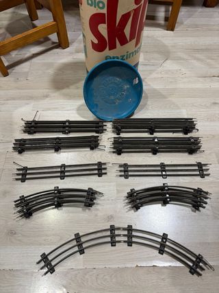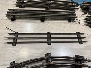 Conjunto de vías de tren antiguas - Incluye tramos rectos y curvos. - Fabricadas en metal oscuro. - 3’72 m en recto - 2’16 m en curvas