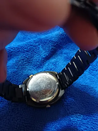 Reloj Citizen automático con 21 joyas y pulsera negra. - Esfera gris con detalles dorados. - Indicador de día y fecha. - Pulsera de eslabones negros. - Ideal para coleccionista. - Busco cambio por reloj automático actua. No me interesa venta prefiero cambio
