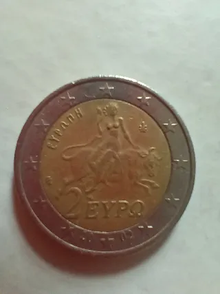 Moneda de 2 euros conmemorativa del Rapto de Europa. - Año de emisión: 2002. - Diseño: Rapto de Europa. - Valor: 2 euros.