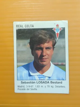 Tarjeta de fútbol de Sebastián Losada con el Real Celta de Vigo, temporada 1993-1994, de la colección de Panini. - Jugador: Sebastián Losada Bestard - Equipo: Real Celta - Temporada: 1993-1994 - Colección: Panini - Fecha de nacimiento: 3-9-67 - Altura: 1,83 m - Peso: 78 kg - Posición: Delantero - Procedencia: Sevilla