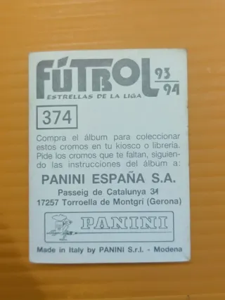 Cromo de José Luis Pérez Caminero, número 369, del Atlético de Madrid. Cromo Futbol 93-94 Panini