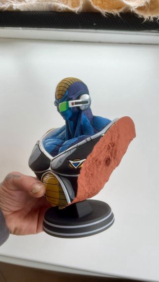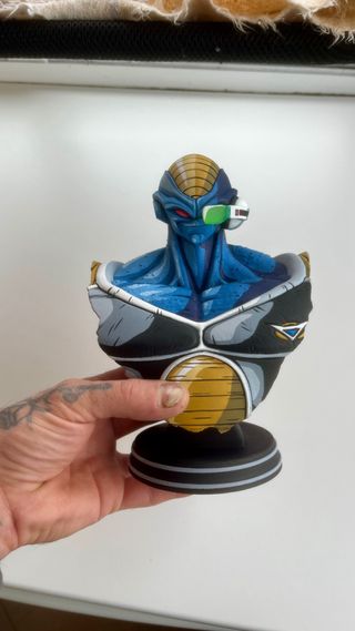 Figura tipo busto del personaje Burter de Dragon Ball Z. - pintada a mano estilo anime - Diseño detallado. - Colores vibrantes. - Base negra con detalles plateados.