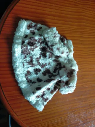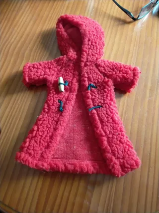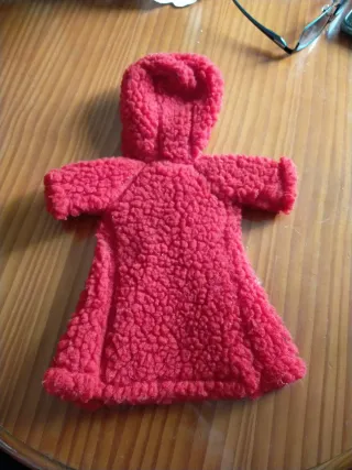 Abrigo de tela tipo borreguito en color rojo, ideal para muñeca Nancy. - Cierre con botón de madera y lazada. - Capucha.