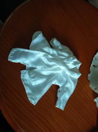 Difícil Blusa de Nancy colección 3, con su lazada. Necesita coser en inicio de los lazos y en una manga. Hay que tener cuenta que es de un material muy delicado.