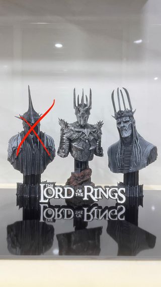 figuras de El Señor de los Anillos pintadas a mano - Réplicas detalladas de personajes icónicos. - Bases temáticas para exhibición. 24cm altura cada una +- -Material PLA -25€ cada una -5€ el logo