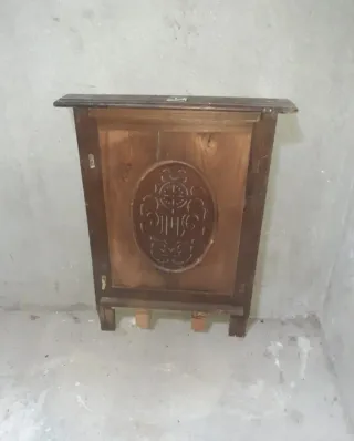 Pieza antigua de madera, procedente de una iglesia, ideal para proyectos de restauración.ver fotos - Material: Madera.- Diseño: Ovalado con detalles tallados.recoger en Gondomar centro.envio por wallapop