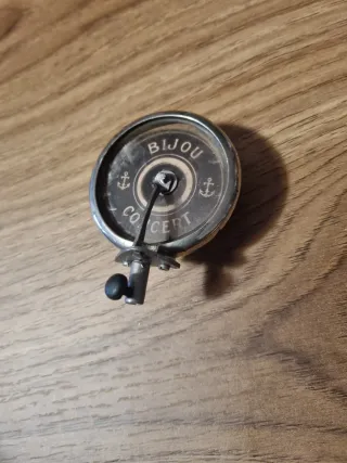 Pieza antigua BIJOU para gramófono o gramola. - Diseño circular con anclas. - Inscripción BIJOU CONCERT.