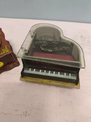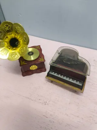Antiguo gramófono y piano miniatura caja musica