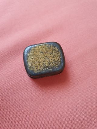 Accesorio antiguo para la limpieza de discos de discos pizarra , con el icónico logo de His Master's Voice. - Diseño circular con detalles dorados. - Base de fieltro. - Ideal para coleccionistas de gramófonos.