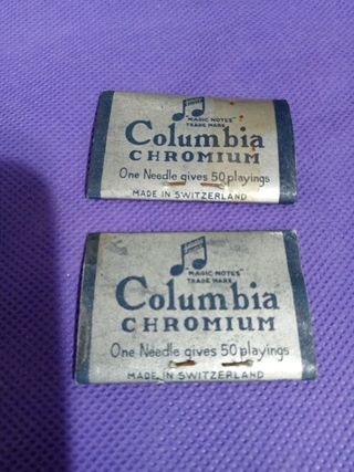 agujas para gramófono ,hay 3 ,dos iguales y la otra las agujas son doradas ,todas están sin estrenar,las vendo por unidad de paquete cada uno vale 15€ ,todos juntos precio diferente.No efectuo envios.Se entrega zona mercado de Usera .