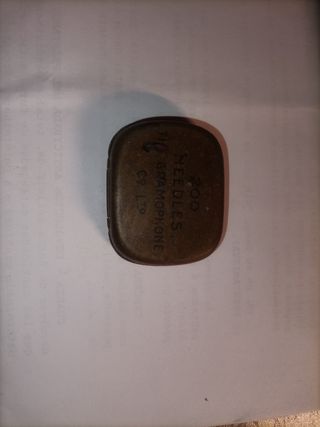 Antigua caja de agujas de gramofono completamente llena de agujas utilizables.