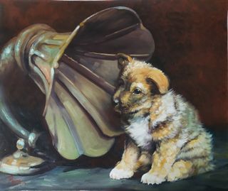 Preciosa pintura al óleo que representa a un perrito junto a un gramófono antiguo. Gran técnica y vistuosismo. Firmada Paine. 2005. Una obra de arte detallada y emotiva. La entrego sin bastidor. Cuadro. La voz de su amo. - Técnica: Óleo sobre lienzo. - Motivo: Cachorro y gramófono. - Estilo: Realista con toques impresionistas.