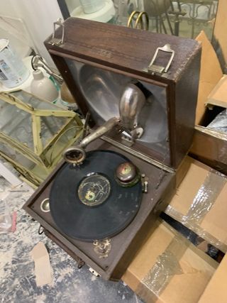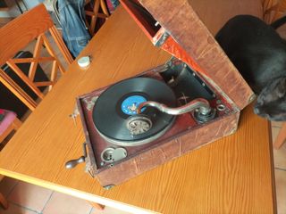 Muy antiguo y precioso gramofono, funciona (puedo mandar video del funcionamiento), reproduce discos de pizarra, puertas de madera abatibles, se abren para escuchar la caja de resonancia. Precioso para decoración, curiosidad o coleccionismo. Aunque funciona se entrega en mano, puedes probarlo pero no tiene garantía ya que este tipo de arreglos tiene muchos años. No realizo envíos, recogida en mano el Valencia capital.