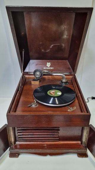 GRAMÓFONO ANTIGUO DE MADERA / ACADEMY /