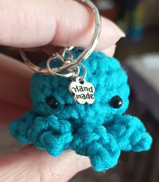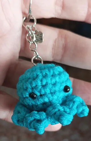 Llavero Pulpo Crochet Azul Hecho a Mano