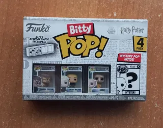 Pack de 4 figuras Bitty Pop de Harry Potter. Incluye un expositor. - Figuras de Harry Potter, Draco Malfoy y Dobby. - Una figura misteriosa sorpresa. - Licencia oficial de Harry Potter.