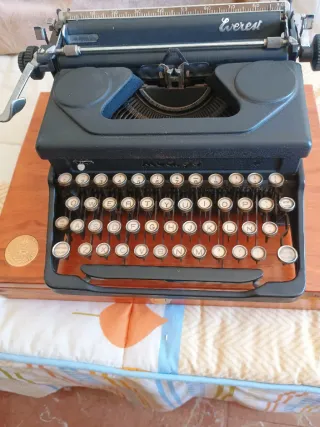 Máquina de escribir vintage de la marca Everest. Un objeto clásico para coleccionistas o amantes de lo retro. - Diseño clásico en color negro. - Teclado QWERTY.