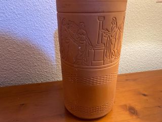 Enfriador de botellas de terracota con diseño en relieve. En perfecto estado. Tiene un diámetro de 13 cm y una altura de 21 cm