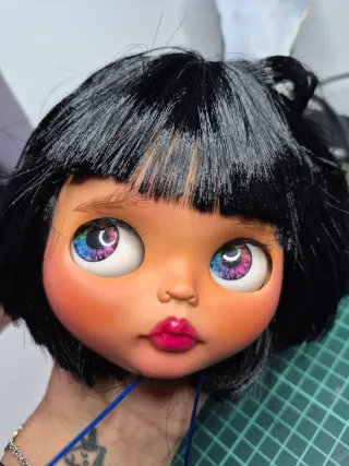 Blythe faceplate y backplate customizados. Tono de piel dark skin. No se incluye pelo ni ojos.