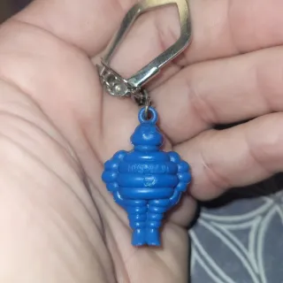 Llavero años 70 del personaje de Michelin. - Color azul. - Diseño del muñeco Michelin.