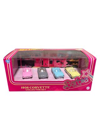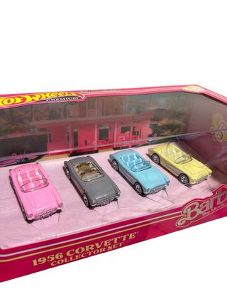 Set coleccionista de 4 coches Corvette de 1956 inspirados en Barbie. - Embalaje con desperfectos. Plástico con algún pliegue *Ver fotos* - Incluye 4 coches a escala en diferentes colores: rosa, gris, azul y amarillo. - Presentado en una caja temática de Barbie The Movie. - Diseñado para coleccionistas.