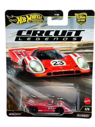 Coche de colección Hot Wheels de la serie Circuit Legends, modelo Porsche 917K. - Réplica detallada del Porsche 917K. - Diseño inspirado en las leyendas de los circuitos. - Parte de la colección Car Culture.