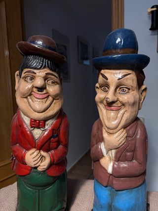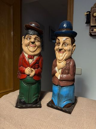 Botelleros de madera de El Gordo y el Flaco. 45cm de alto.