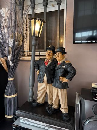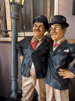 Figura decorativa de El Gordo y el Flaco con una lámpara de farola. 70cm de alto 40cm de largo