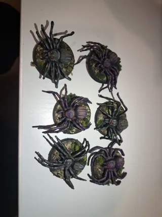 Conjunto de figuras de arañas gigantes, perfectas para tus partidas de Warhammer o Dungeons & Dragons. Cada figura está montada sobre una peana detallada con aspecto de terreno. - Figuras de arañas de gran tamaño. - Peanas texturizadas con detalles de vegetación. - Nivel de pintura alto. Peanas de 40mm. Ideales para Middle Earth SBG / El Señor de los Anillos o cualquier otro wargame, juego de mesa o de rol. - Precio por todas. No REBAJO Warhammer Games Workshop Condes Vampiro Khemri Nekehara Tumularios Ghouls The Old Wolrd TOW miniaturas White Dwarf lord rings enano elfos oscuro silvanos altos elfos skaven bretonia grand cathay