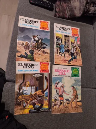Lote de 4 libros de aventuras del Oeste. - El Sheriff King: El Secreto de Rocas Rojas 21 - El Sheriff King: Clanton contra Mac Diver 14 - El Sheriff King: Trampa contra un hombre 28 - Buffalo Bill 29 joyas Literarias juveniles 1971 10€ la unidad.
