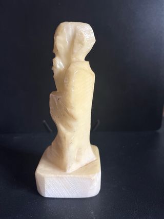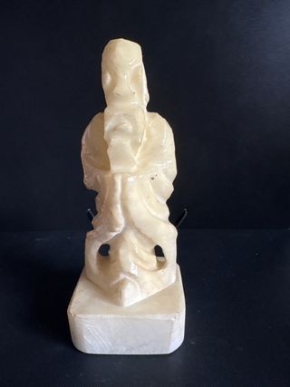 Figura decorativa tallada en alabastro. Su diseño evoca una figura tradicional. - Material: Alabastro. - Base cuadrada 6x6 cm - Altura 16 cm Esta intacta con el color del paso de los años