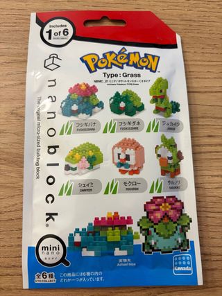 Set de construcción Nanoblock de Pokémon, tipo Hierba. Incluye 1 de 6 modelos coleccionables. - Modelos disponibles: Bulbasaur, Ivysaur, Venusaur, Shaymin, Rowlet, Grookey. - Marca: Kawada. - Producto oficial de Pokémon. Comprado en un Pokemon Center en Japón 2025.