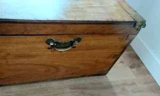 Este baúl marino de madera de alcanfor es una pieza clásica. - Comprado en anticuario en los años 70. - Detalles y refuerzos en bronce. - Tiene imperfecciones propias de su vida en casa desde hace más de 50 años. - Medidas: Ancho 68cm x fondo 68 cm x alto 40 cm. SE ACEPTAN OFERTAS.