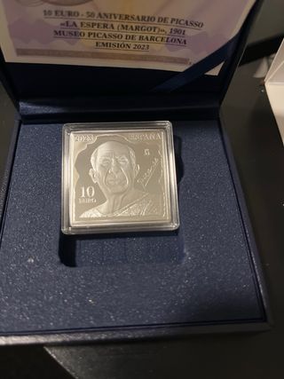 Moneda de plata proof conmemorativa del 50 aniversario de Picasso. - La Espera (Margot), 1901. - Museo Picasso de Barcelona. - Emisión 2023. - Certificado de autenticidad 02789.