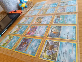 Colección de cartas Pokémon de Squirtle y sus evoluciones. - Incluye varias cartas de Squirtle. - También se incluyen cartas de Wartortle y Blastoise. - Una carta de Vaporeon GX. - Album para coleccionista Excelente para gradear. Todas las cartas están en perfecto estado e impecables