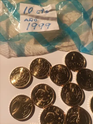 Doce monedas de 10 céntimos del año 1999. Monedas nuevas perfectas sin circular - Cada moneda tiene un valor de 10 céntimos. - Año de acuñación: 1999.