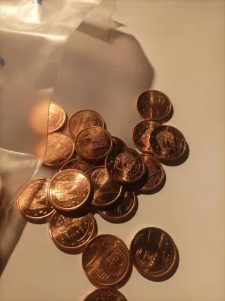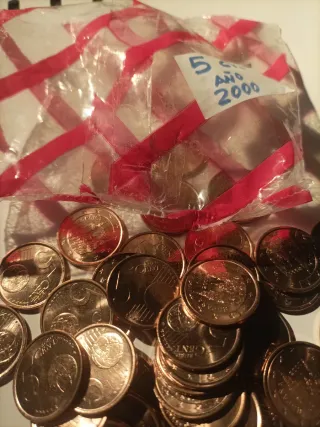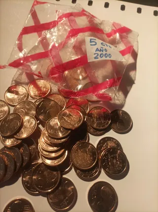 Lote de veinticinco monedas de 5 céntimos del año 2000. Monedas nuevas perfectas sin circular - Monedas de 5 céntimos. - Año de acuñación: 2000. - Cantidad: 25 unidades.