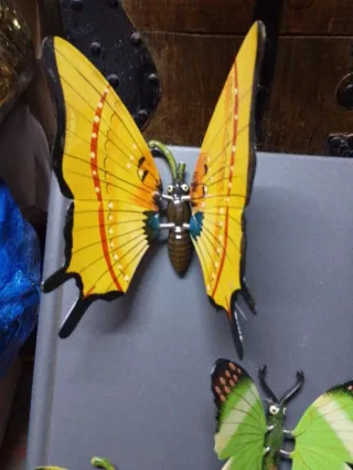 Conjunto de figuras decorativas de insectos. En las fotos donde sale la mano, se les ha caído el iman trasero. Y en la última foto con dos libélulas, a una le falta el iman, y a la otra se le han despegado las alas. Al escarabajo le falta un cuerno. - Incluye 3 mariposas grandes, 1 con iman y 2 no. 1 Escarabajo. 4 Mariposas medianas,, 2 con iman, 2 no. 8 mariposas pequeñas con iman. 4 libélulas, 2 con iman, 2 sin iman, y a una de estas últimas despegadas las alas - Cada figura tiene un imán para su colocación. - Variedad de colores y diseños.