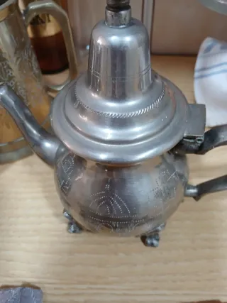 Auténtica tetera de Marruecos con un diseño tradicional. - Elaborada en metal plateado. - Presenta grabados decorativos. - Base con tres patas.