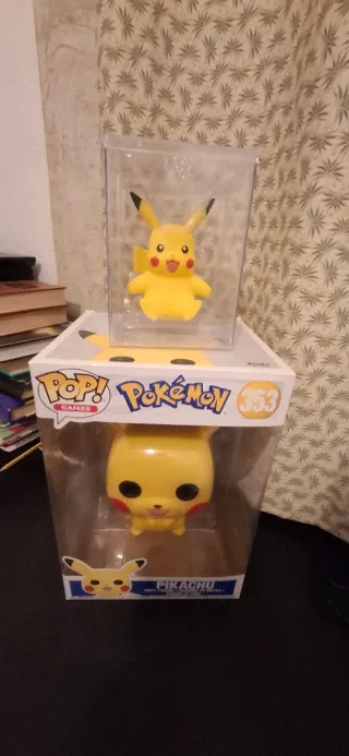 Lote de figuras Funko Pop! de Pokémon. - Incluye dos figuras de Pikachu. - Una figura es el modelo 353 de Funko Pop! Pokémon. - Ambas figuras vienen en sus cajas originales.