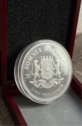 Moneda de plata de 1 kg de la serie African Wildlife, con diseño de leopardo. - Plata de ley 999.9. - Peso: 1 kg. - Diseño: Leopardo en su hábitat. SOLO ESTA SEMANA